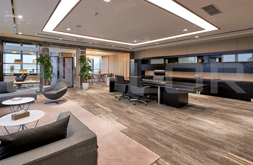 本案擁有茶座,休息區,辦公區,娛樂區等功能分區,多種風格表現要統一格調,這對設計師的功底考驗尤深。整體采用大理石與原木色為主色調,勾勒出端莊與時尚的線條美。在該項目中,家具陳設講究對稱,重視文化意蘊;配飾擅用字畫,古玩、卷軸,精致的工藝品加以點綴更顯主人的品味與尊貴,更具有文化韻味和獨特風格。